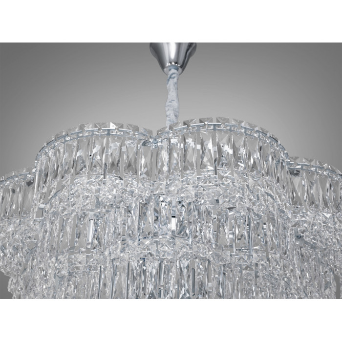 Срібний блиск металевих деталей люстри та чистота її кришталів створюють унікальну гармонію світла та розкоші, яка перетворить будь-яке приміщення на королівську залу. Цей світильник Діаша ідеально підійде для великих віталень, вишуканих ресторанів або пишних залів, додаючи їм відчуття величі та розкішного стилю.