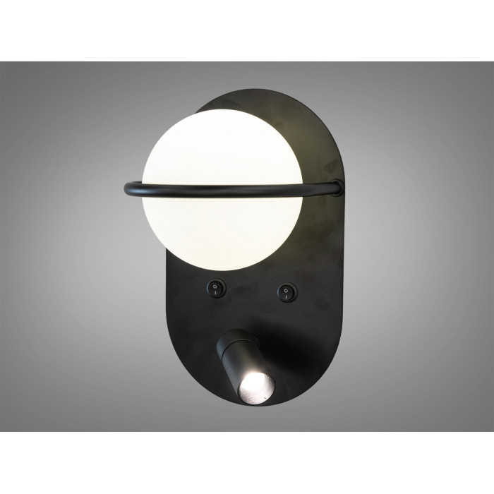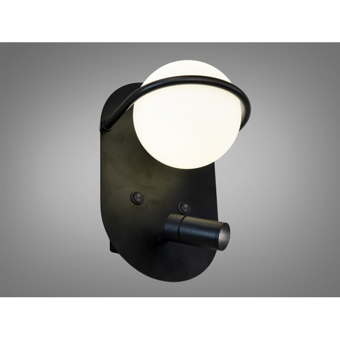 Абажур кулеподібної форми, виконаний із матового скла, створює ілюзію денного світла, що ніжно огортає простір, приносячи спокій та гармонію у кожен момент відпочинку. Чорна обробка металевих елементів вносить сміливий акцент у дизайн, надаючи лампі сучасного вигляду та теплої родзинки, яка ідеально поєднується з натуральними текстурами, притаманними скандинавському дизайну.