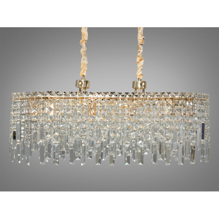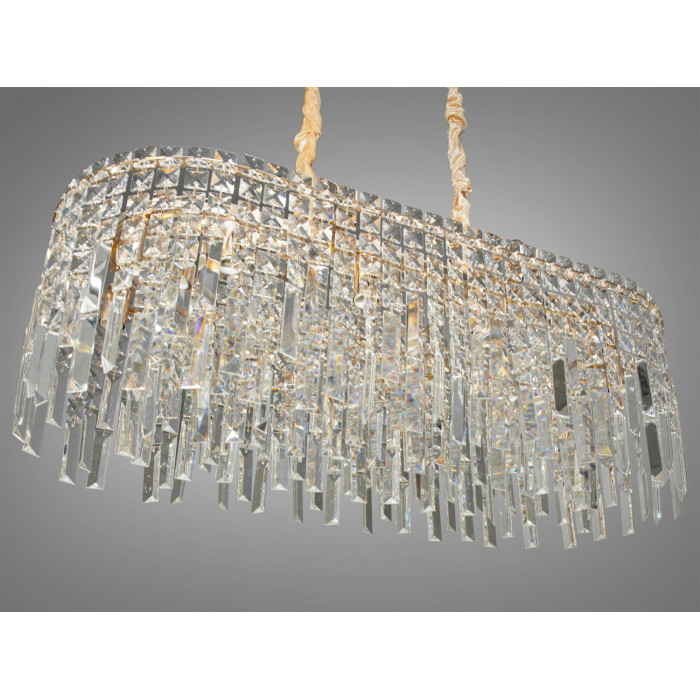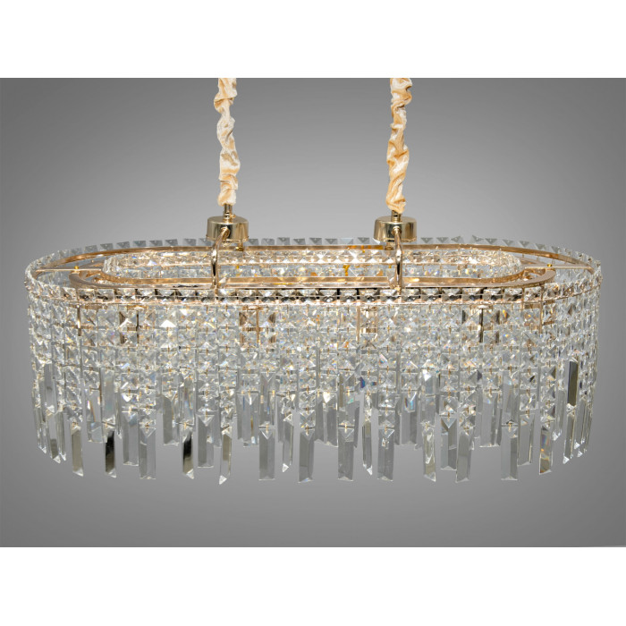 Коли йдеться про вибір люстри епіцентр домашнього затишку – вітальню, ця кришталева люстра овальної форми може стати вічним супутником сімейних зустрічей, свят та розслаблюючих вечорів. Її світло відтворює ілюзію зоряного неба, що м'яко огортає простір, даруючи відчуття спокою та комфорту.
