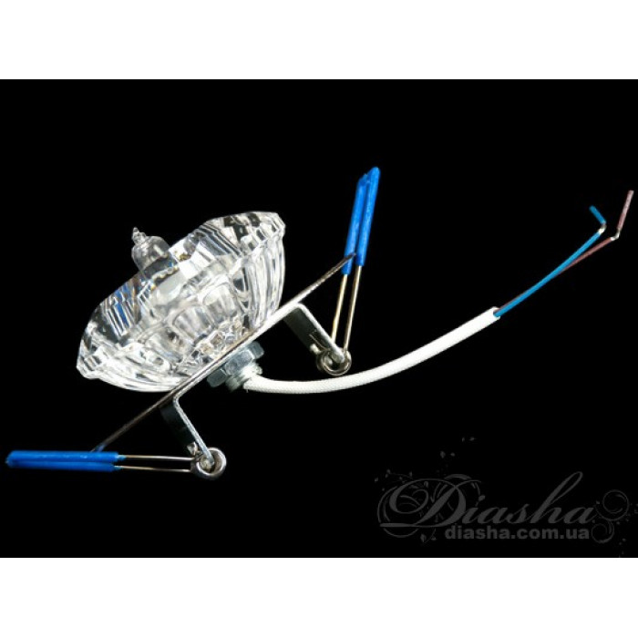 Точкові світильники можуть виконувати різнопланові функції. Крім загального стельового освітлення, вони незамінні на кухні, коли робочому місцю не вистачає освітлення або в кабінеті - над письмовим столом. При цьому, точкові кришталеві світильники, представлені Вашій увазі, можуть забезпечити Вам комфорт саме на тому рівні, про який Ви стільки мріяли! І не забувайте про значну економію - це теж повинно принести Вам гарний настрій. Для оптових покупців відпускається лише ящиками по 50 шт. Лампа і трансформатор в комплект не входять.