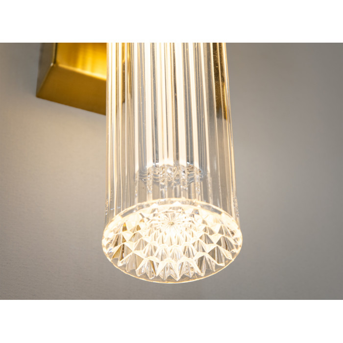 Цей настінний світильник лед — зразок сучасного мінімалістичного дизайну, в якому кожна деталь продумана для створення естетичного та функціонального акценту. Його елегантний корпус у золотому кольорі виготовлений з високоякісного металу із сатинованою обробкою, що додає поверхні вишуканого вигляду. Прозорий плафон із тонованого акрилу не тільки захищає джерело світла, але й забезпечує м’яке та рівномірне освітлення, яке створює атмосферу комфорту і затишку.