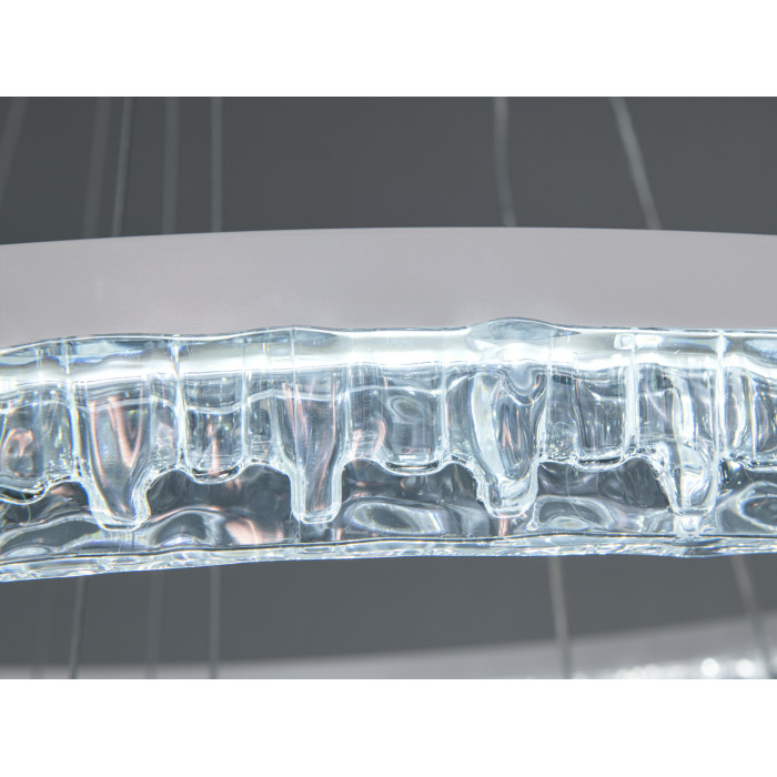 - Три кільця на підвісах формують багаторівневу композицію і дають м’який рівномірний потік без різких тіней. Кільця різного діаметра можна розміщувати симетрично або з динамічним зміщенням.