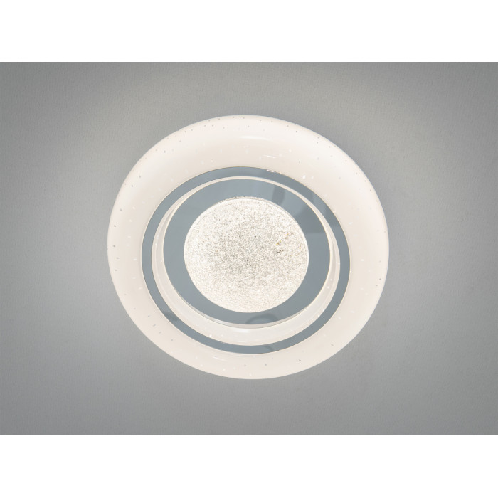 Кругла накладна люстра з хромованою окантовкою і матовим акриловим плафоном формує м′яке, рівномірне світло без різких тіней. Конструкція за форм-фактором близька до світлодіодної панелі, тому світильник виглядає акуратно, не перевантажує стелю та зручно монтується в кімнатах із невисокими стелями. Потужність 22 Вт зазвичай достатня для комфортного освітлення простору приблизно 8–10 м². Модель працює без пульта і не потребує додатків: керування відбувається звичайним настінним вимикачем.