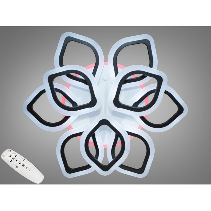 Люстра світлодіодна під стелю з диммером та LED підсвічуванням потужністю 95 W є справжнім втіленням інновацій та сучасного дизайну в освітленні. Її конструкція, що складається з органічно переплетених овальних кілець, нагадує космічну композицію або квітку, повну гармонії та балансу, яка могла б бути витвором сучасних абстрактних художників.