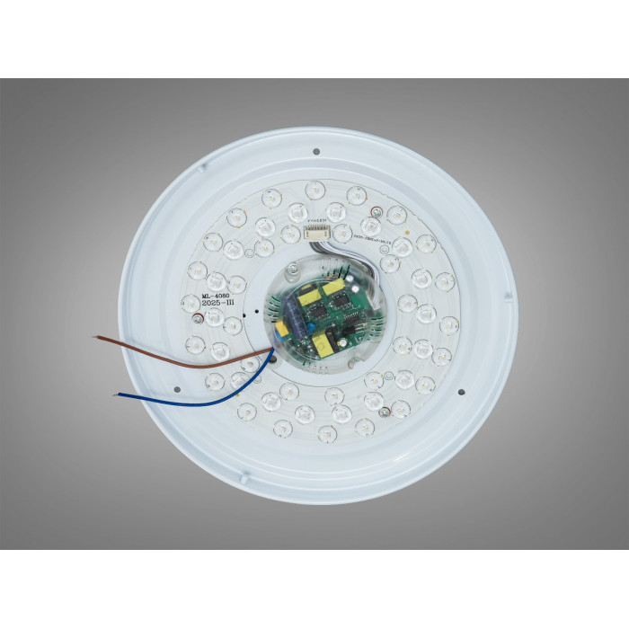 Цей круглий стельовий світильник пропонує м’яке, рівномірне світло та акуратний сучасний вигляд. Білий корпус і матовий розсіювач допомагають створити комфортну атмосферу без різких тіней, а накладний монтаж зберігає простір і виглядає охайно навіть у низьких приміщеннях. Модель працює на світлодіодній технології з потужністю 34 Вт і розрахована на загальне освітлення невеликих зон приблизно до 6 м². Керування здійснюється від стандартного настінного вимикача, без пульта.