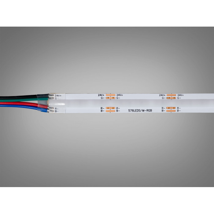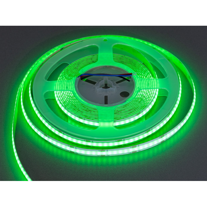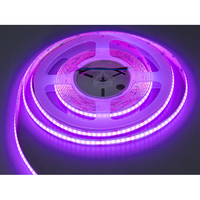 Візуально — це тонка, акуратна LED стрічка шириною 8 мм, на якій встановлено 108 світлодіодів типу SMD 3535 на кожен метр. Це спеціальні RGB-діоди, що генерують повний спектр кольорів. Коли ви вмикаєте її, приміщення оживає: будь-який колір, будь-який настрій, будь-яка атмосфера — все доступне у вас під рукою. Стрічка працює від 24 В постійного струму, споживаючи лише 12 Вт/м, що робить її ефективною та економною, навіть при тривалому щоденному використанні.