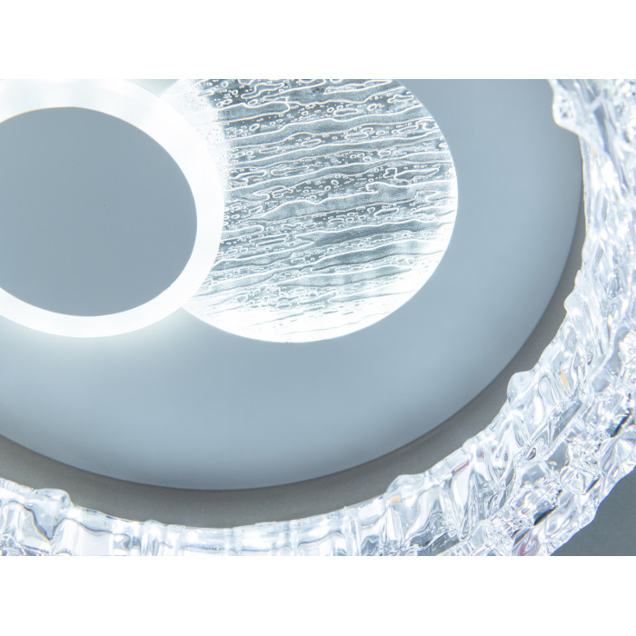 - Матеріали: прозорий акриловий обідок, центральний розсіювач з хвилястою фактурою.