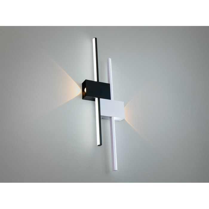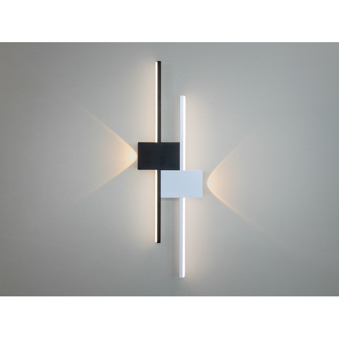 Цей стильний настінний світильник є втіленням сучасного підходу до освітлення в інтер'єрі. Його дизайн гармонійно поєднує контрастні кольори: строгий чорний і яскравий білий. Центральний елемент у вигляді геометричних квадратів додає моделі витонченості та мінімалістичного шарму, тоді як дві вертикальні LED палки створюють відчуття легкості та витонченості. Розташування ламп забезпечує рівномірне підсвічування стіни, додаючи приміщенню особливого характеру.