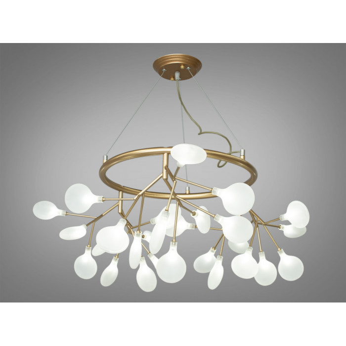 Люстра має металеве кільце, що поєднує акрилові плафони, які мають форму сплюснутих ламп. Завдяки цьому досягається ефект легкості та прозорості. Металеве гілля між кільцем і плафонами є справжнім шедевром інженерії, створюючи унікальний вигляд.