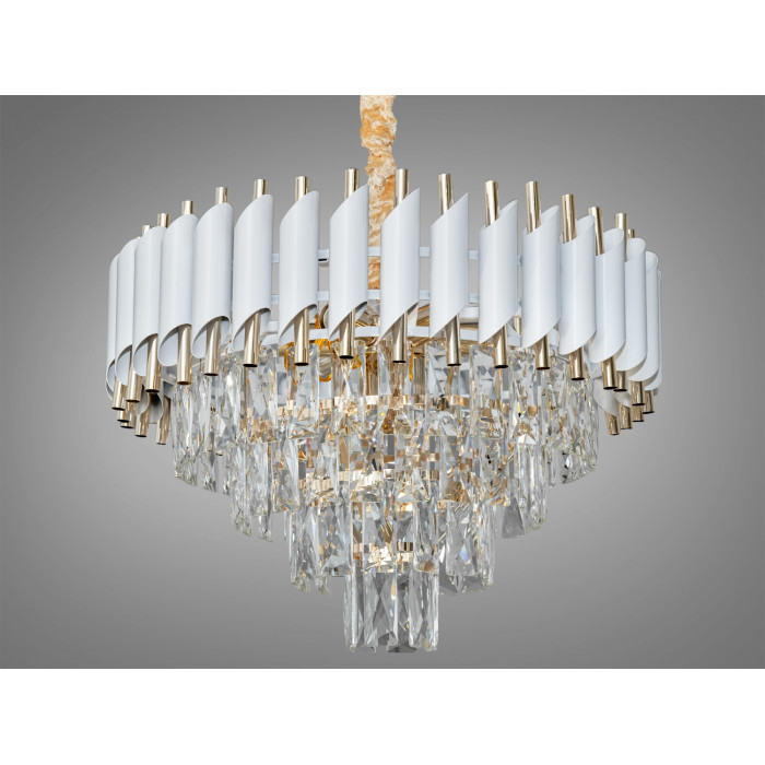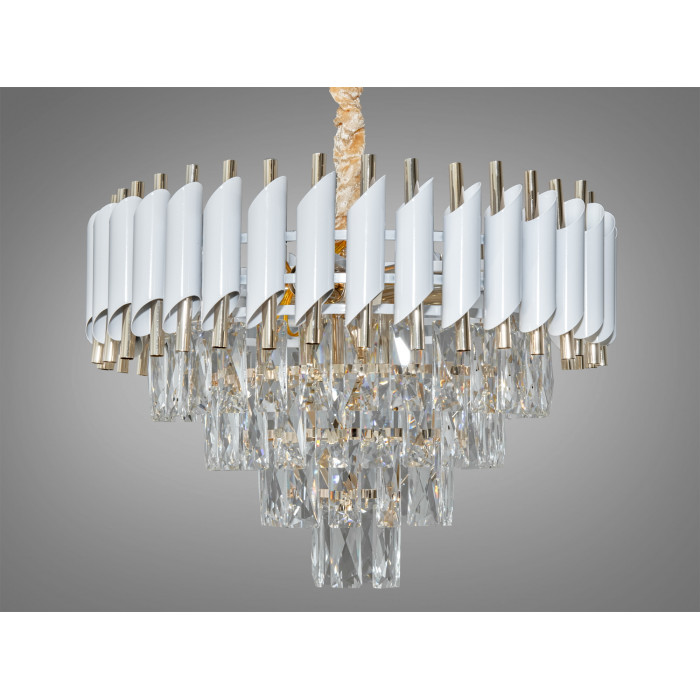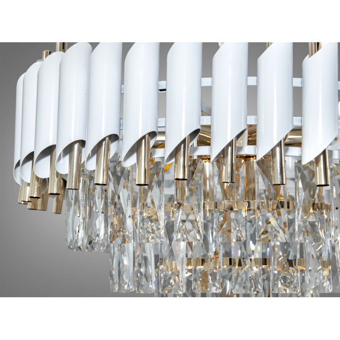 - Матеріали: металевий каркас з білим та золотистим покриттям; прозорий багатогранний кришталь.