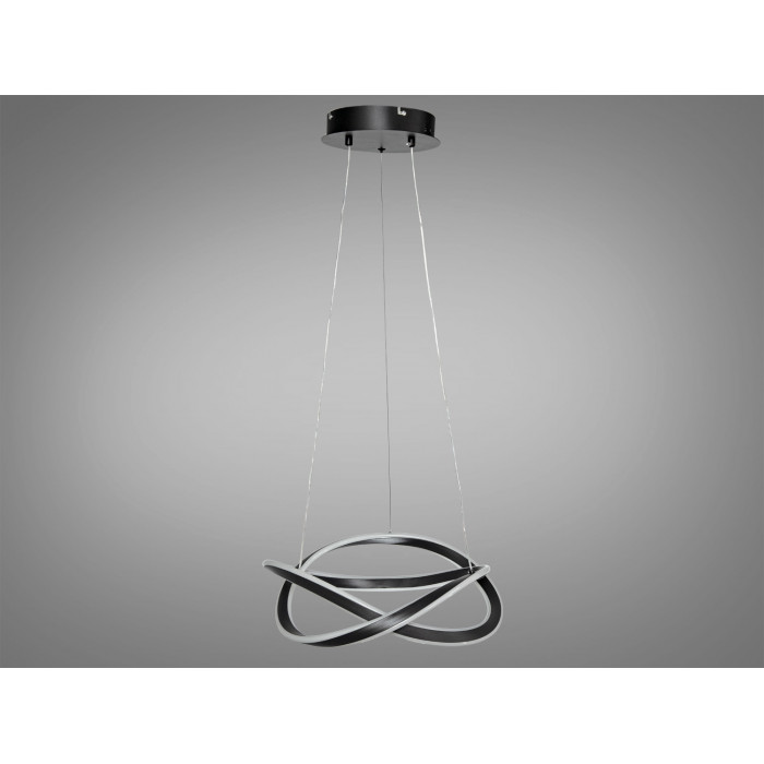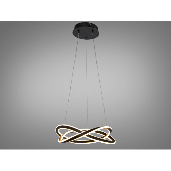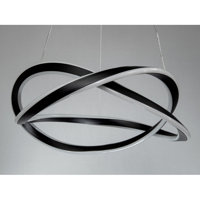 Ця підвісна LED-люстра з переплетеними контурами кілець формує виразний силует і дає рівномірне, комфортне світло для щоденного користування. Матове чорне покриття металевого корпусу підкреслює сучасний характер моделі та поєднується з більшістю актуальних інтер’єрів. Керування виконується від настінного вимикача — без пульта, що зручно для стандартної проводки й простих сценаріїв освітлення.