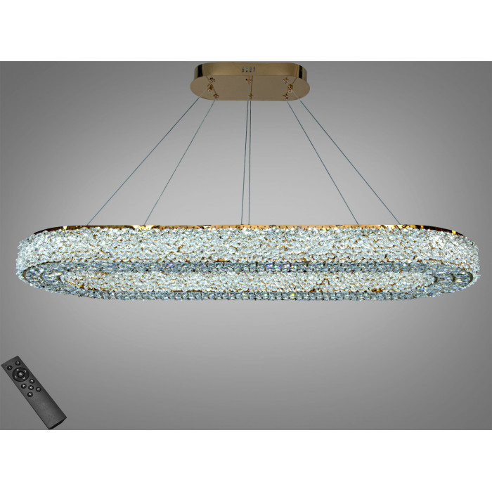 Висновок: кришталева LED підвісна люстра у золоті з пультом і овальною формою створює ефектний світловий акцент і передбачає зручне керування освітленням для приміщень до 14 м².