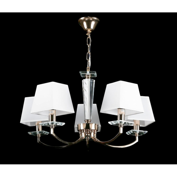 Стиль:Люстры с абажурамиВысота, см:55-90Диаметр, см:65Количество ламп:5MAX мощность лампы, Вт:40Напряжение, В:220Патрон:Е14Цвет:золото, белый.Материал:металл, хрусталь, тканьПроизводитель:Splendid Ray(Китай)Дополнительная информация:Тип крепления:на крючок