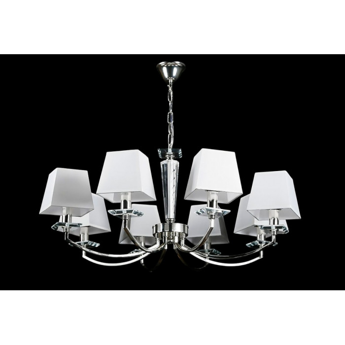 Стиль:Люстры с абажурамиВысота, см:50-90Диаметр, см:85Количество ламп:8MAX мощность лампы, Вт:40Напряжение, В:220Патрон:Е14Цвет:хром, белый.Материал:металл, хрусталь, тканьПроизводитель:Splendid Ray(Китай)Дополнительная информация:Тип крепления:на крючок