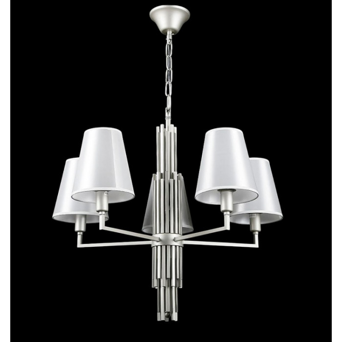Стиль:Люстры с абажурамиВысота, см:65-110Диаметр, см:62Количество ламп:5MAX мощность лампы, Вт:40Напряжение, В:220Патрон:Е14Цвет:белый, серебро.Материал:металл, тканьПроизводитель:Splendid Ray(Китай)Дополнительная информация:Тип крепления:на крючок