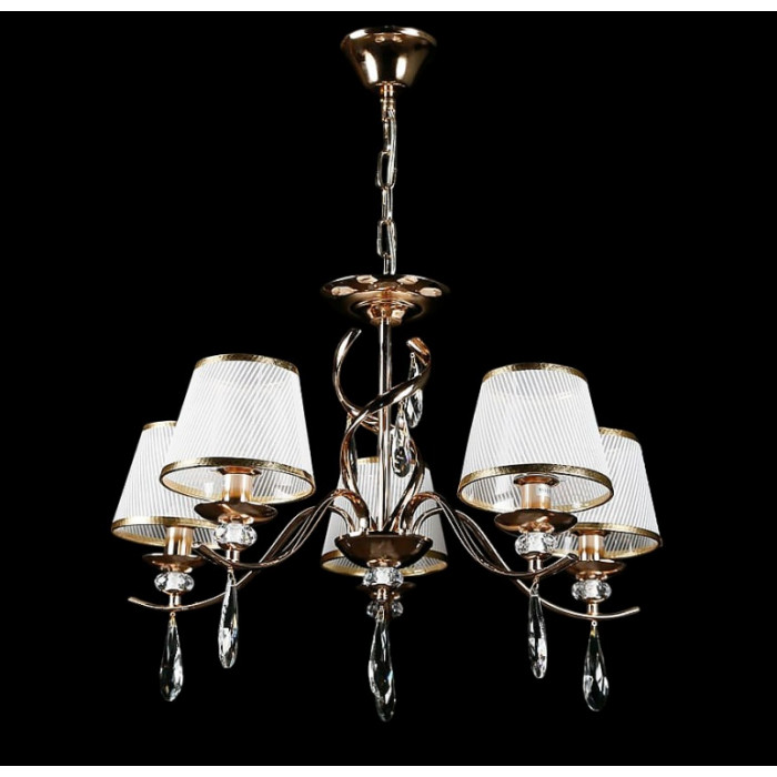 Стиль:Люстры с абажурамиВысота, см:55-90Диаметр, см:60Количество ламп:5MAX мощность лампы, Вт:40Напряжение, В:220Патрон:Е14Цвет:золото, белый.Материал:металл, хрусталь, тканьПроизводитель:Splendid Ray(Китай)Дополнительная информация:Тип крепления:на крючок