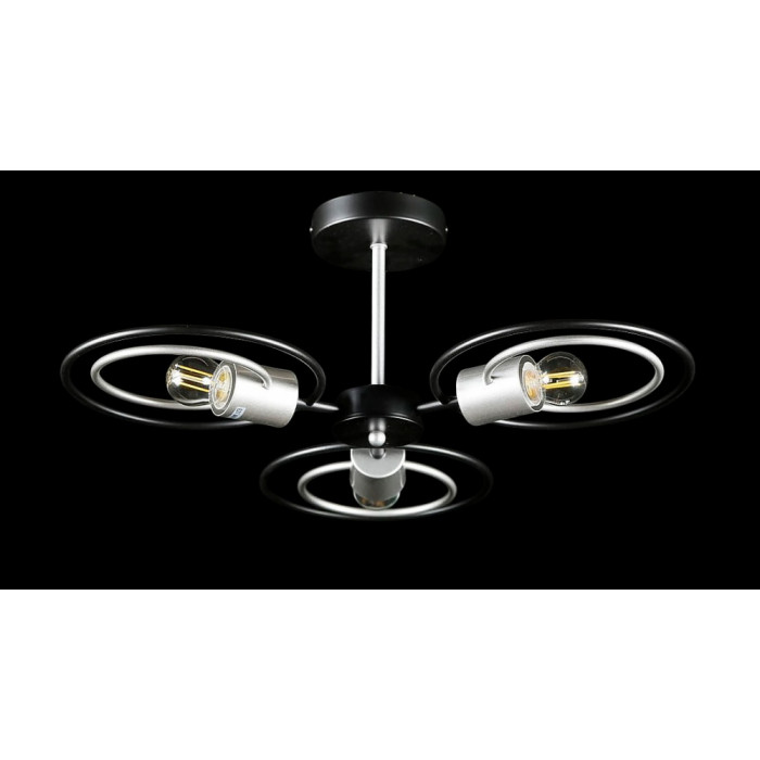 Стиль:Люстры с плафонамиВысота, см:21Диаметр, см:52Количество ламп:3MAX мощность лампы, Вт:40Напряжение, В:220Патрон:E27Цвет:черный, сереброМатериал:металлПроизводитель:Splendid Ray(Китай)Дополнительная информация:Тип крепления:на кронштейн