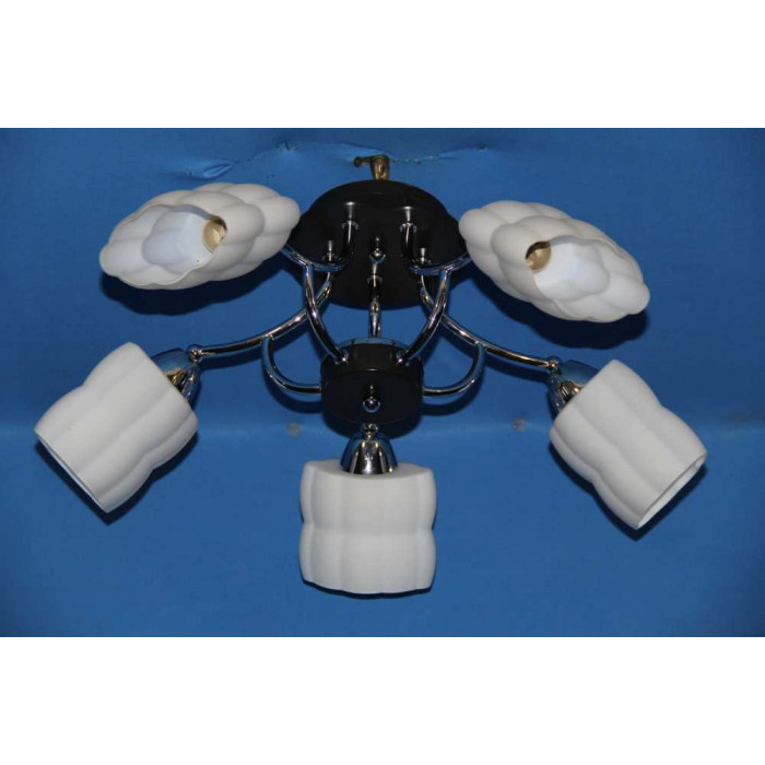 Стиль:Люстры с плафонамиВысота, см:23Диаметр, см:52Количество ламп:5MAX мощность лампы, Вт:40Напряжение, В:220Патрон:Е14Цвет:Хром, черныйМатериал:Металл, стеклоПроизводитель:Splendid Ray(Китай)Дополнительная информация:Тип крепления:на кронштейн