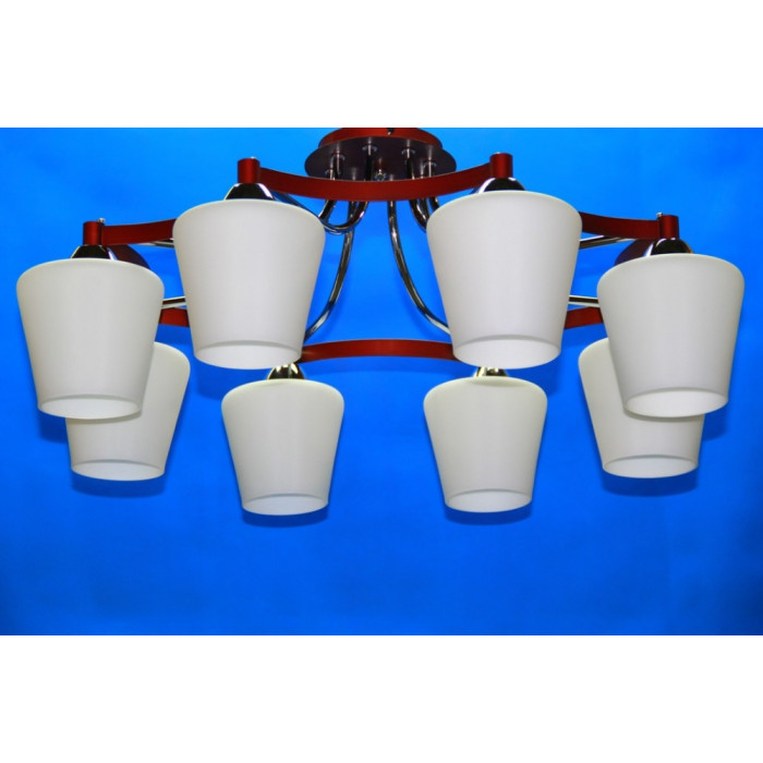 Стиль:Люстры с плафонамиВысота, см:30Диаметр, см:70Количество ламп:8MAX мощность лампы, Вт:40Напряжение, В:220Патрон:Е27Цвет:хром,коричневый,белыйМатериал:металл,стеклоПроизводитель:Splendid Ray(Китай)Дополнительная информация:Тип крепления:на кронштейн
