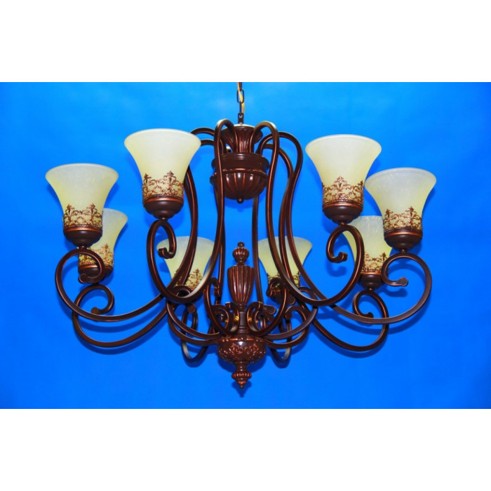 Стиль:Люстры с плафонамиВысота, см:80-110Диаметр, см:92Количество ламп:8MAX мощность лампы, Вт:40Напряжение, В:220Патрон:Е27Цвет:бронза,коричневый,бежевый Материал:металл,стеклоПроизводитель:Splendid Ray(Китай)Дополнительная информация:Тип крепления:на крючок