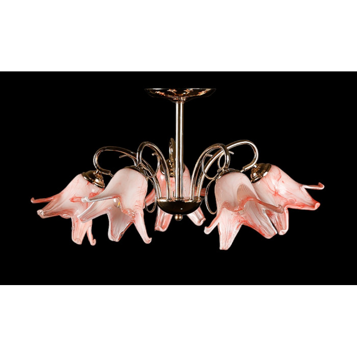 Стиль:Люстры с плафонамиВысота, см:30Диаметр, см:60Количество ламп:5MAX мощность лампы, Вт:40Напряжение, В:220Патрон:Е27Цвет:золото,розовыйМатериал:металл,стеклоПроизводитель:Splendid Ray(Китай)Дополнительная информация:Тип крепления:на кронштейн