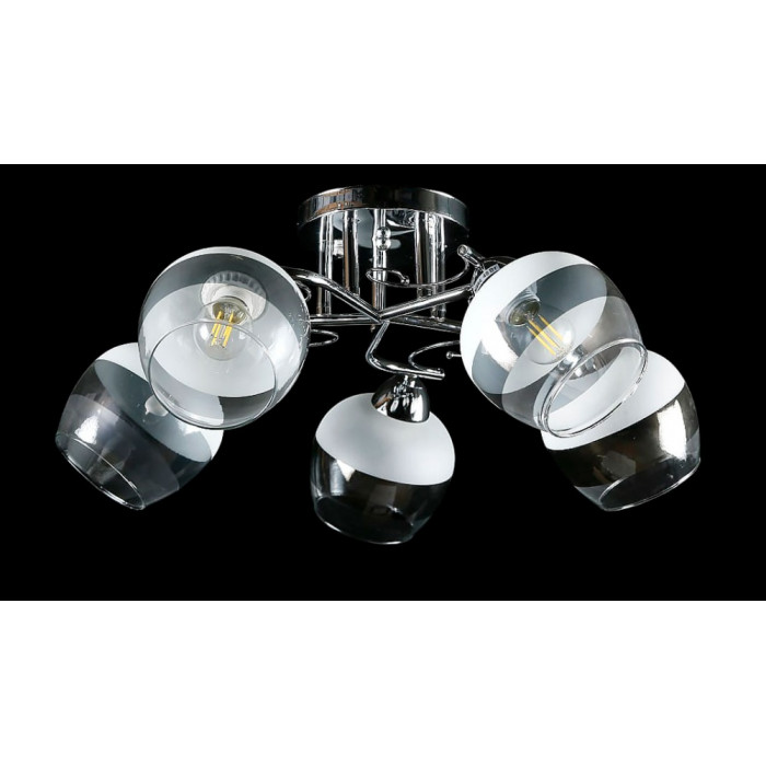 Стиль:Люстры с плафонамиВысота, см:23Диаметр, см:55Количество ламп:5MAX мощность лампы, Вт:40Напряжение, В:220Патрон:E27Цвет:хром, белый.Материал:металл, стекло.Производитель:Splendid Ray(Китай)Дополнительная информация:Тип крепления:на кронштейн