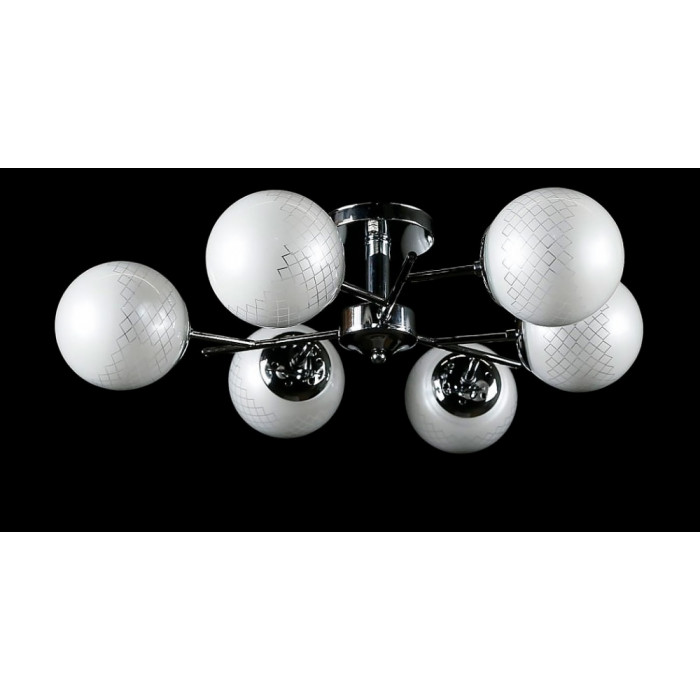 Стиль:Люстры с плафонамиВысота, см:18Диаметр, см:60Количество ламп:6MAX мощность лампы, Вт:40Напряжение, В:220Патрон:E27Цвет:хром, белый.Материал:металл, стекло.Производитель:Splendid Ray(Китай)Дополнительная информация:Тип крепления:на кронштейн