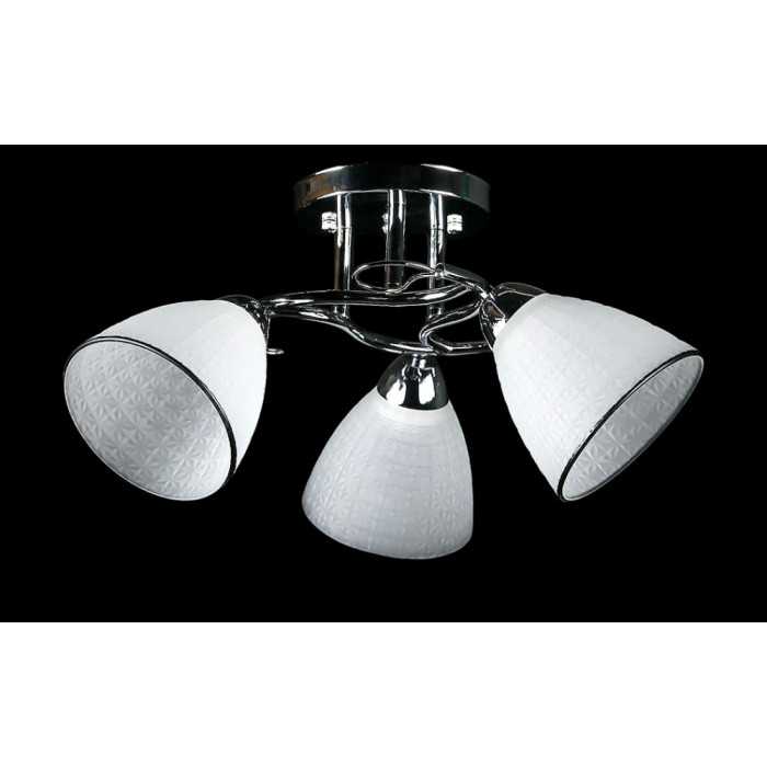 Стиль:Люстры с плафонамиВысота, см:24Диаметр, см:43Количество ламп:3MAX мощность лампы, Вт:40Напряжение, В:220Патрон:E27Цвет:хром, белый.Материал:металл, стекло.Производитель:Splendid Ray(Китай)Дополнительная информация:Тип крепления:на кронштейн