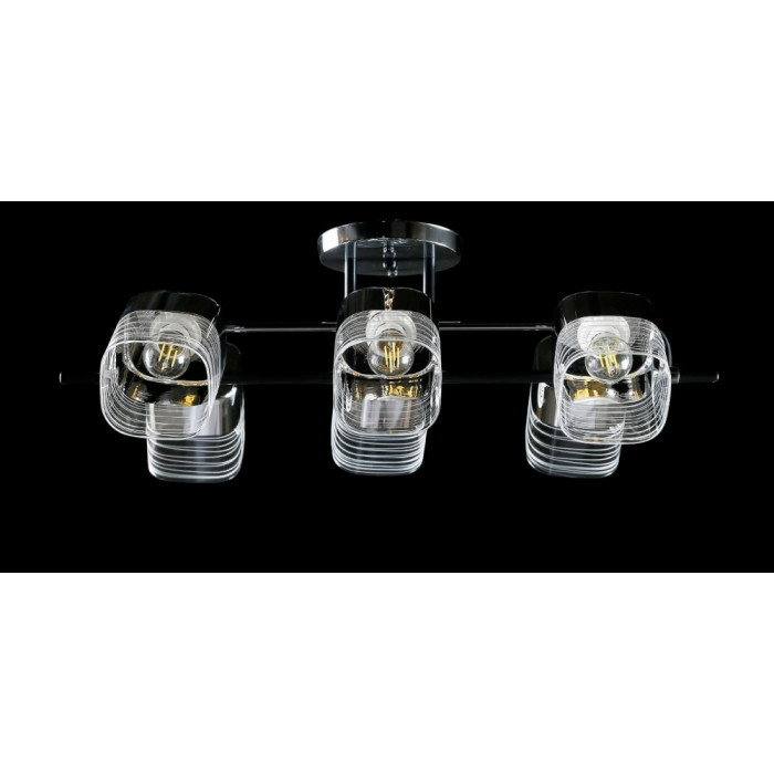 Стиль:Люстры с плафонамиВысота, см:15Диаметр, см:74Количество ламп:6MAX мощность лампы, Вт:40Напряжение, В:220Патрон:E27Цвет:хром, черныйМатериал:металл, стекло.Производитель:Splendid Ray(Китай)Дополнительная информация:поворотные плафоныТип крепления:на кронштейн