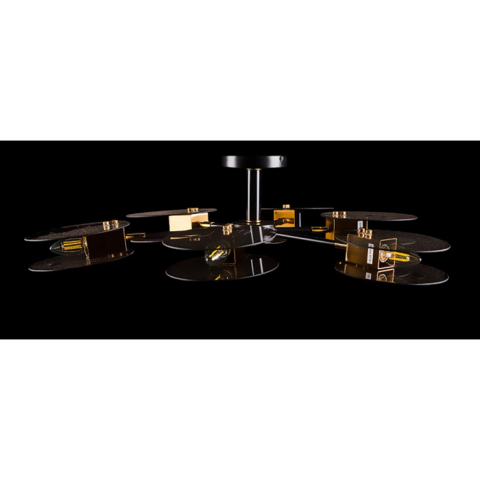 Стиль:Люстры с плафонамиВысота, см:34Диаметр, см:72Количество ламп:6MAX мощность лампы, Вт:40Напряжение, В:220Патрон:Е14Цвет:черный, бронзаМатериал:металл, стекло.Производитель:Splendid Ray(Китай)Дополнительная информация:Тип крепления:на кронштейн