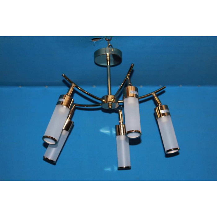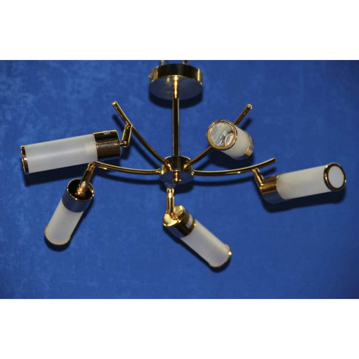 Стиль:Люстры с плафонамиВысота, см:25Диаметр, см:65Количество ламп:5MAX мощность лампы, Вт:40Напряжение, В:220Патрон:Е14Цвет:Золото,белый.Материал:Металл,стекло.Производитель:Splendid Ray(Китай)Дополнительная информация:поворотные плафоныТип крепления:на кронштейн