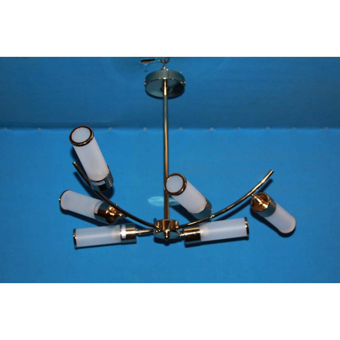 Стиль:Люстры с плафонамиВысота, см:42Диаметр, см:47Количество ламп:6MAX мощность лампы, Вт:40Напряжение, В:220Патрон:Е14Цвет:золото, белыйМатериал:металл, стеклоПроизводитель:Splendid Ray(Китай)Дополнительная информация:поворотные плафоныТип крепления:на кронштейн