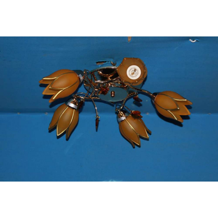 Стиль:Люстры с плафонамиВысота, см:21Диаметр, см:50Количество ламп:5MAX мощность лампы, Вт:40Напряжение, В:220Патрон:Е27Цвет:золото, коричневыйМатериал:металл, стеклоПроизводитель:Splendid Ray(Китай)Дополнительная информация:Тип крепления:на кронштейн
