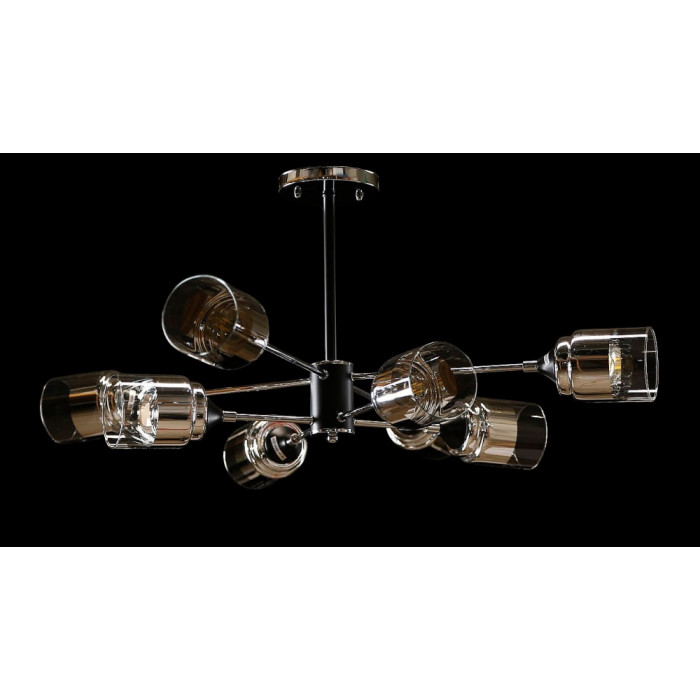 Стиль:Люстры с плафонамиВысота, см:40Диаметр, см:90Количество ламп:8MAX мощность лампы, Вт:40Напряжение, В:220Патрон:E27Цвет:хром, черныйМатериал:металл, стекло.Производитель:Splendid Ray(Китай)Дополнительная информация:Тип крепления:на кронштейн