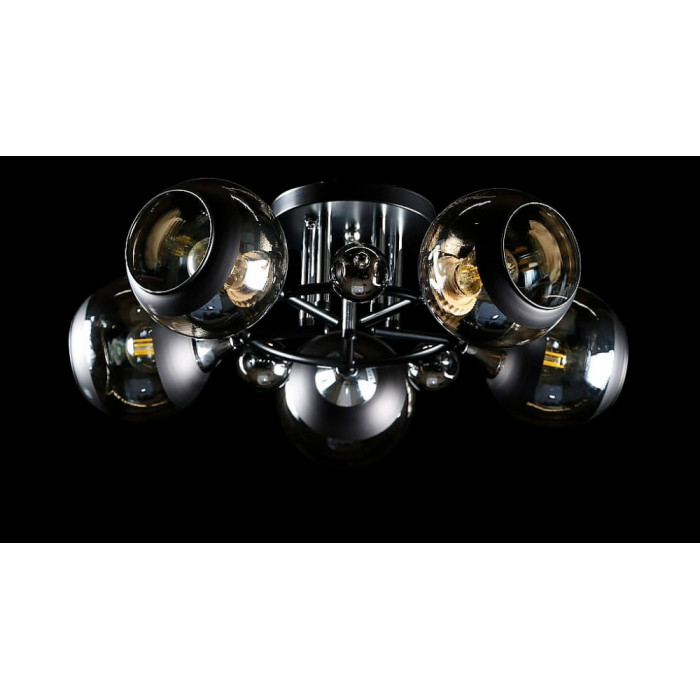 Стиль:Люстры с плафонамиВысота, см:17Диаметр, см:50Количество ламп:5MAX мощность лампы, Вт:40Напряжение, В:220Патрон:E27Цвет:черный, хромМатериал:металл, стекло.Производитель:Splendid Ray(Китай)Дополнительная информация:Тип крепления:на кронштейн