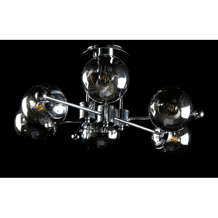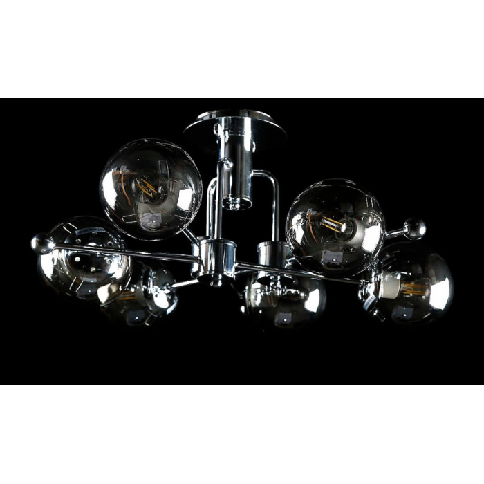 Стиль:Люстры с плафонамиВысота, см:35Диаметр, см:60Количество ламп:6MAX мощность лампы, Вт:40Напряжение, В:220Патрон:E27Цвет:хром, черныйМатериал:металл, стекло.Производитель:Splendid Ray(Китай)Дополнительная информация:Тип крепления:на кронштейн