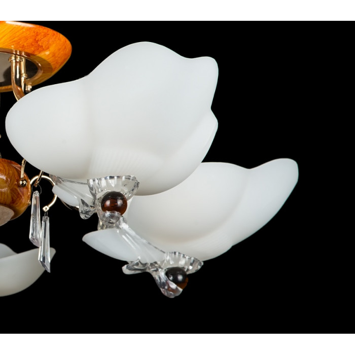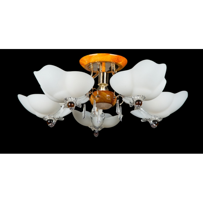 Стиль:Люстры с плафонамиВысота, см:25Диаметр, см:65Количество ламп:6MAX мощность лампы, Вт:60Напряжение, В:220Патрон:Е27Цвет:Золото,коричневый,белый.Материал:Металл,стекло.Производитель:Splendid Ray(Китай)Дополнительная информация:Тип крепления:на кронштейн