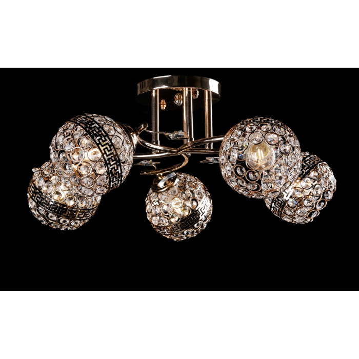 Стиль:Люстры с плафонамиВысота, см:23Диаметр, см:55Количество ламп:5MAX мощность лампы, Вт:40Напряжение, В:220Патрон:E27Цвет:золото,белыйМатериал:металл,хрустальПроизводитель:Splendid Ray(Китай)Дополнительная информация:Тип крепления:на кронштейн