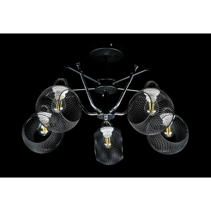 Стиль:Люстры с плафонамиВысота, см:36Диаметр, см:58Количество ламп:5MAX мощность лампы, Вт:40Напряжение, В:220Патрон:E27Цвет:черный, хромМатериал:металлПроизводитель:Splendid Ray(Китай)Дополнительная информация:Тип крепления:на кронштейн