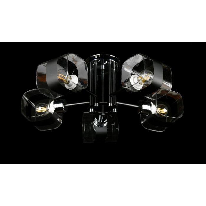 Стиль:Люстры с плафонамиВысота, см:20Диаметр, см:55Количество ламп:5MAX мощность лампы, Вт:40Напряжение, В:220Патрон:E27Цвет:черный, белыйМатериал:металл, стекло.Производитель:Splendid Ray(Китай)Дополнительная информация:Тип крепления:на кронштейн