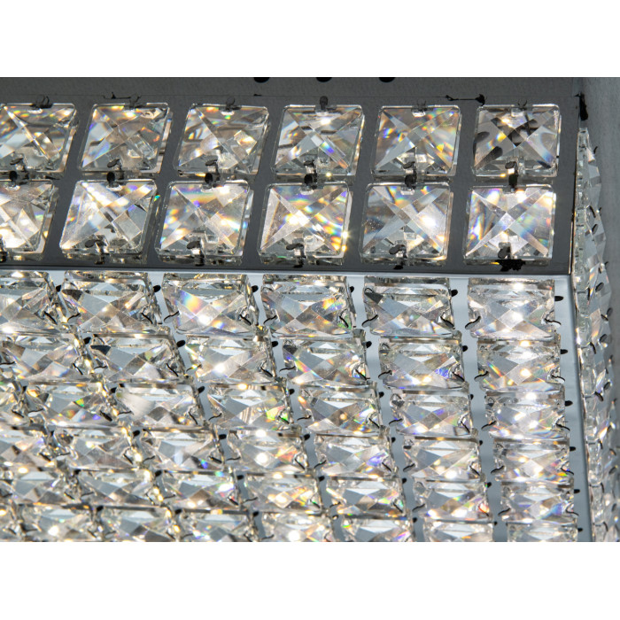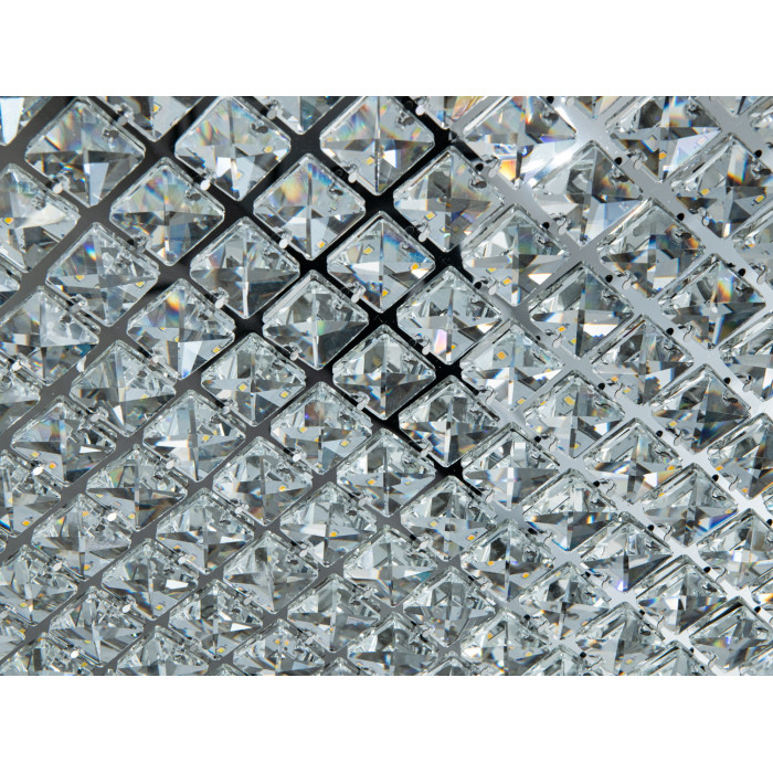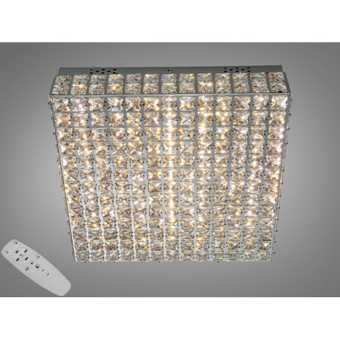 Стельова кришталева люстра Diasha у хромовому виконанні поєднує сучасні технології та виразний декор. Квадратна форма з прозорими кристалами створює м’яке, затишне світло і візуально підкреслює геометрію кімнати. Вбудовані LED-модулі 82 W розраховані на освітлення площі орієнтовно до 14 м², що підходить для спальні, вітальні або кухні-студії. Завдяки пульту ДК і димеру можна регулювати яскравість, підлаштовуючи освітлення під конкретне завдання — від розслабленого вечора до робочого режиму.