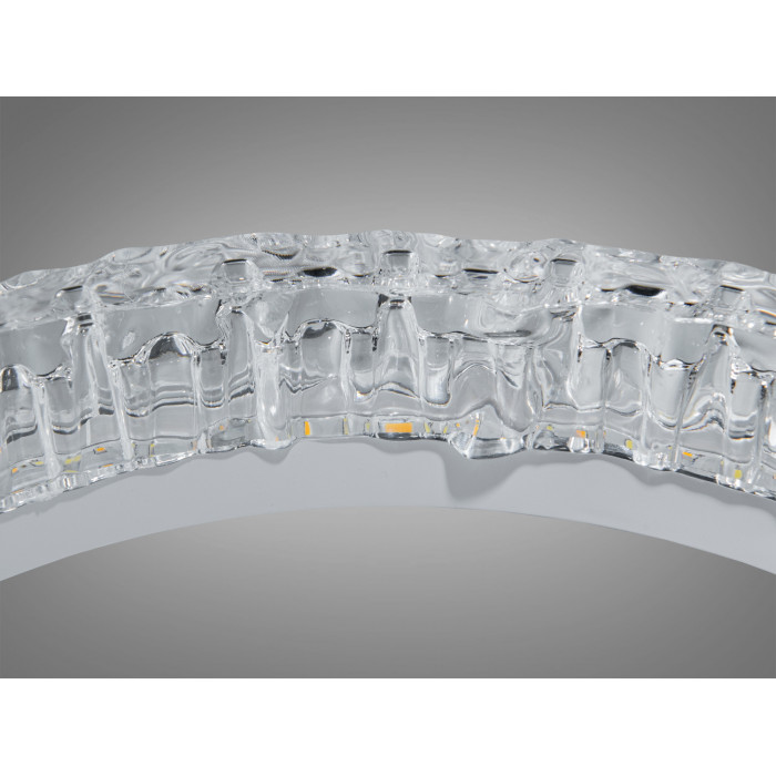 Кільця виконані з прозорого акрилу, який створює легкий «кристалічний» ефект по контуру, додаючи світлу глибини без надмірної яскравості. Білий металевий корпус підтримує мінімалістичний стиль, а плоский монтаж зберігає простір та пасує до низьких стель. Зовнішній вигляд поєднується з групами «люстри-кільця», «акрилові» та «сучасні», тож світильник доречно виглядає в інтер’єрах від скандинавського до мінімалістичного.