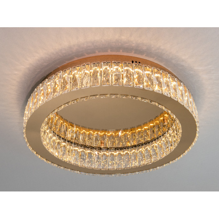 Світлодіодна кришталева люстра 55 Вт з пультом — золото