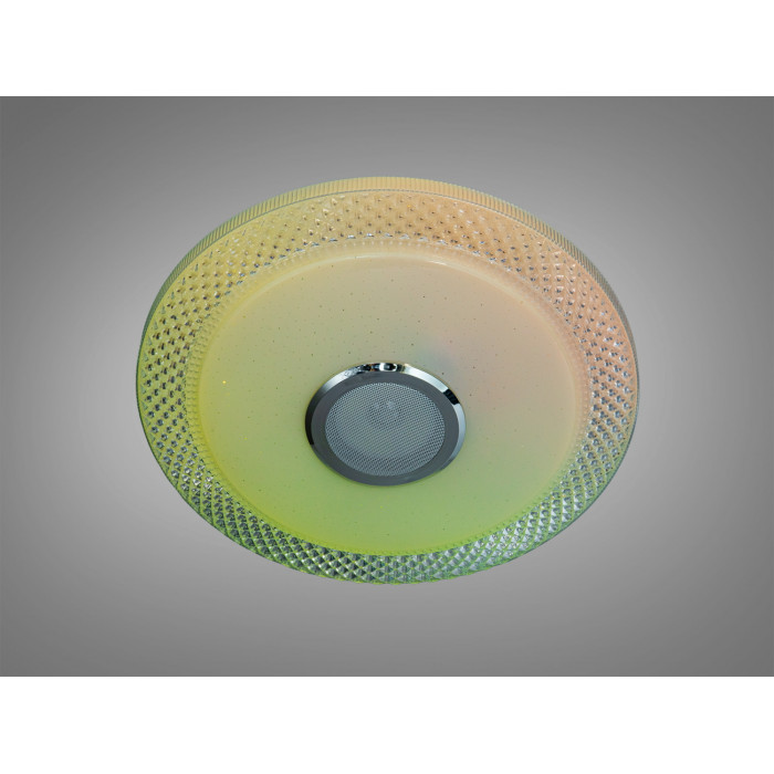 Ця стельова смарт люстра поєднує LED-освітлення 70 Вт для кімнат орієнтовно до 12 м² та вбудовану Bluetooth-колонку для відтворення музики. Керування можливе з пульта та зі смартфона через додаток Smart Life (платформа TUYA). Кольорові RGB-сегменти створюють атмосферне підсвічування, а білий режим забезпечує рівномірне базове світло для щоденних завдань.