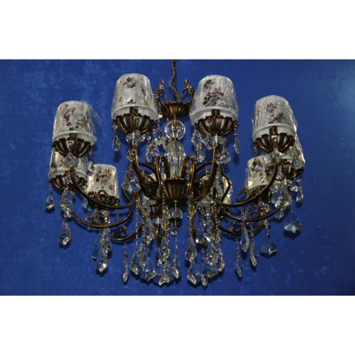 Стиль:Люстры свечиВысота, см:75Диаметр, см:85Количество ламп:10MAX мощность лампы, Вт:40Напряжение, В:220Патрон:Е14Цвет:бронза,белыйМатериал:металл,стекло,хрусталь,тканьПроизводитель:Splendid Ray(Китай)Дополнительная информация:Тип крепления:на кронштейн