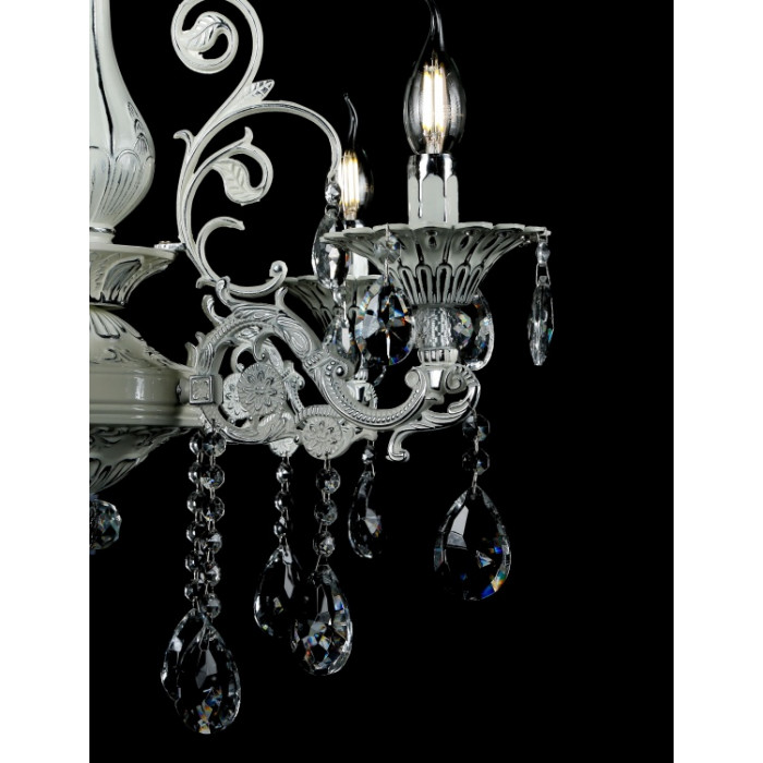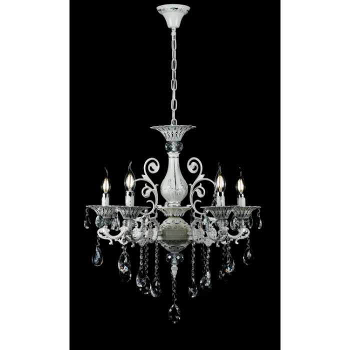 Стиль:Люстры свечиВысота, см:75-100Диаметр, см:60Количество ламп:5MAX мощность лампы, Вт:40Напряжение, В:220Патрон:E14Цвет:белый, сереброМатериал:металл,хрустальПроизводитель:Splendid Ray(Китай)Дополнительная информация:Тип крепления:на крючок