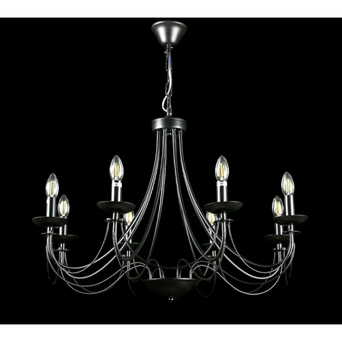Стиль:Люстры свечиВысота, см:70-110Диаметр, см:80Количество ламп:8MAX мощность лампы, Вт:40Напряжение, В:220Патрон:Е14Цвет:черныйМатериал:металлПроизводитель:Splendid Ray(Китай)Дополнительная информация:Тип крепления:на крючок