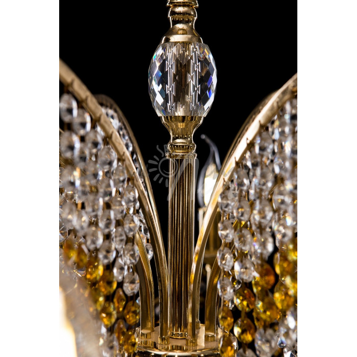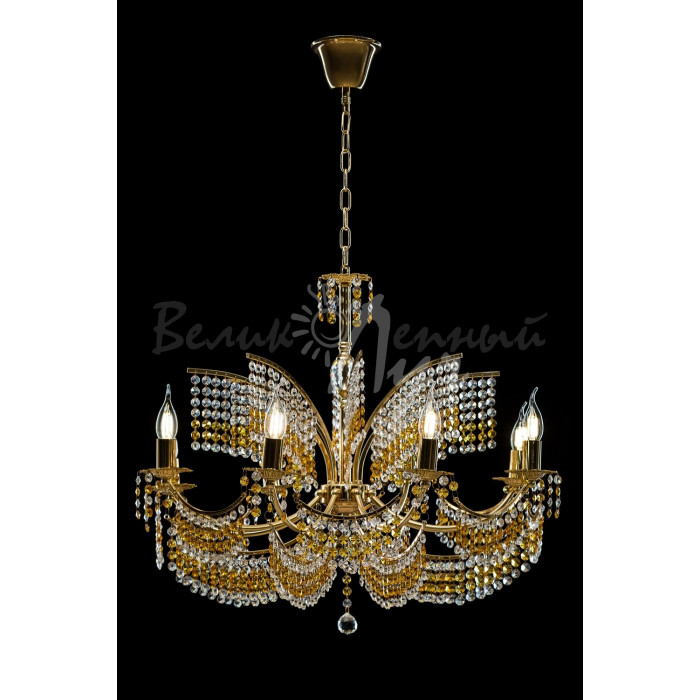 Стиль:Люстры свечиВысота, см:100Диаметр, см:77Количество ламп:8MAX мощность лампы, Вт:40Напряжение, В:220Патрон:Е14Цвет:золото, белый, коричневыйМатериал:металл, стеклоПроизводитель:Splendid Ray(Китай)Дополнительная информация:Тип крепления:на крючок