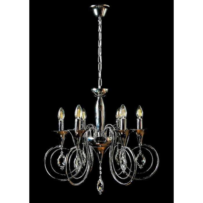 Стиль:Люстры свечиВысота, см:100Диаметр, см:58Количество ламп:6MAX мощность лампы, Вт:40Напряжение, В:220Патрон:Е14Цвет:хром, белый.Материал:металл, хрустальПроизводитель:Splendid Ray(Китай)Дополнительная информация:Тип крепления:на крючок