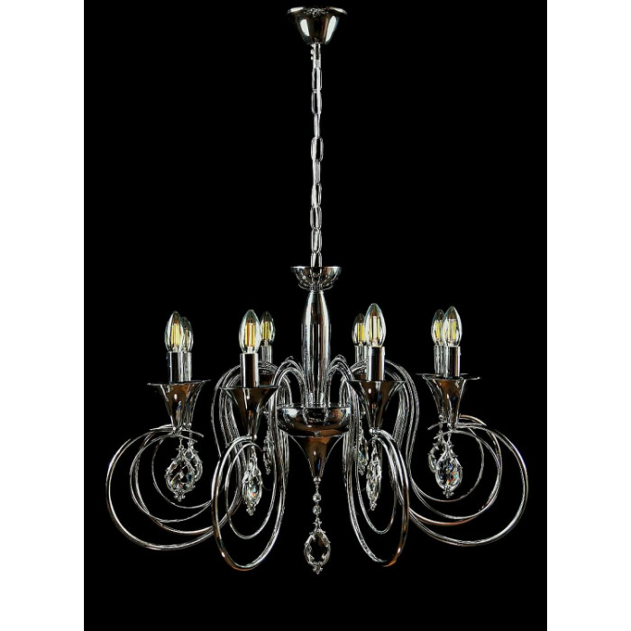 Стиль:Люстры свечиВысота, см:100Диаметр, см:75Количество ламп:8MAX мощность лампы, Вт:40Напряжение, В:220Патрон:Е14Цвет:хром, белый.Материал:металл, хрустальПроизводитель:Splendid Ray(Китай)Дополнительная информация:Тип крепления:на крючок